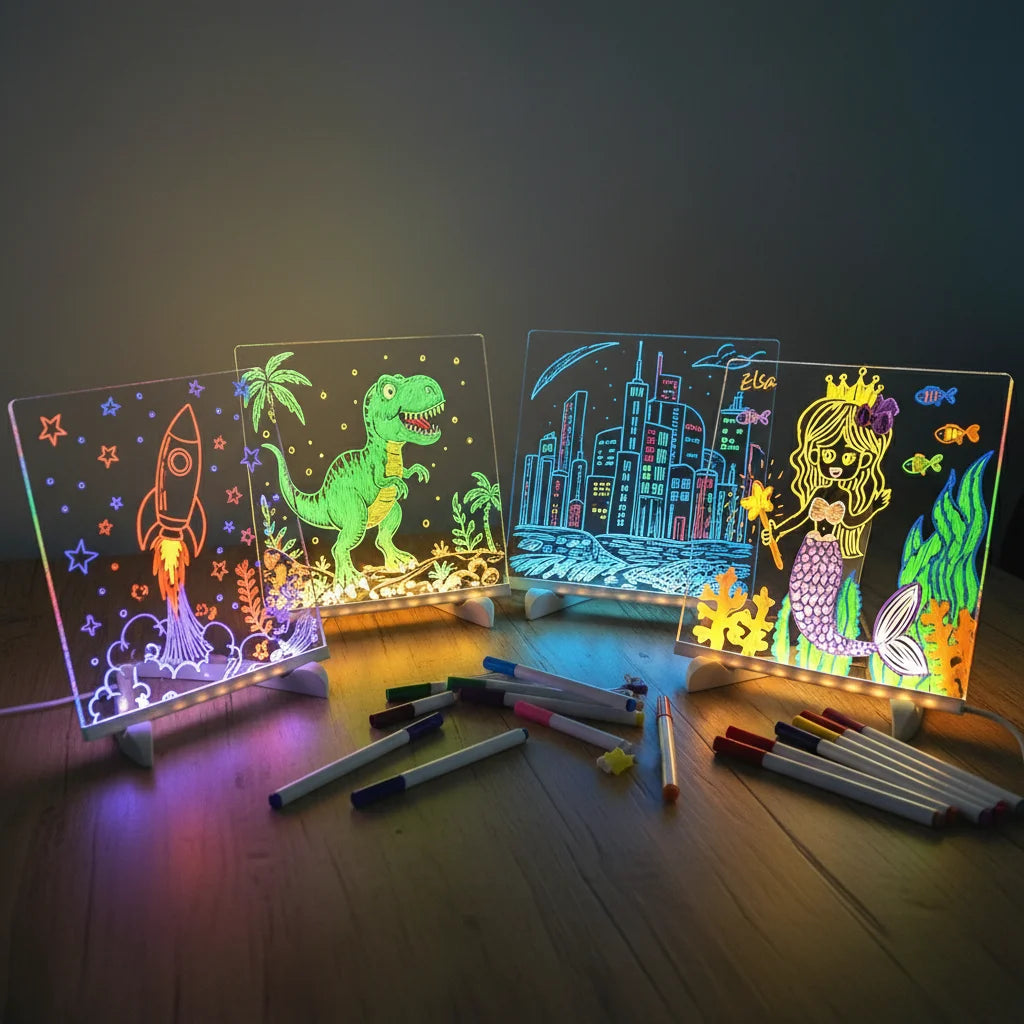 The possibilities are endless! From whimsical mermaids and fantastical creatures to everyday scenes, LumiBoard™ transforms any drawing into a glowing spectacle. It encourages bold colors and imaginative storytelling.